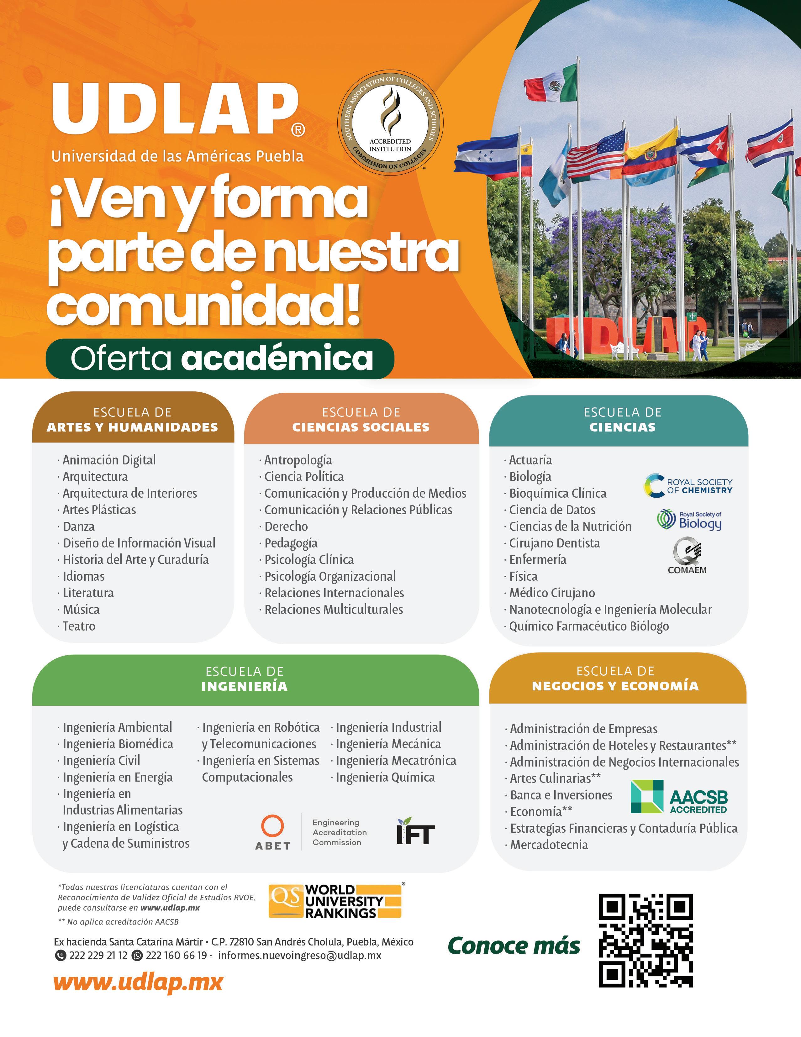 Interdisciplinaria, en cualquiera de los campos del conocimiento, la innovación o la creación artística que se cultivan en la Universidad de las Américas Puebla.