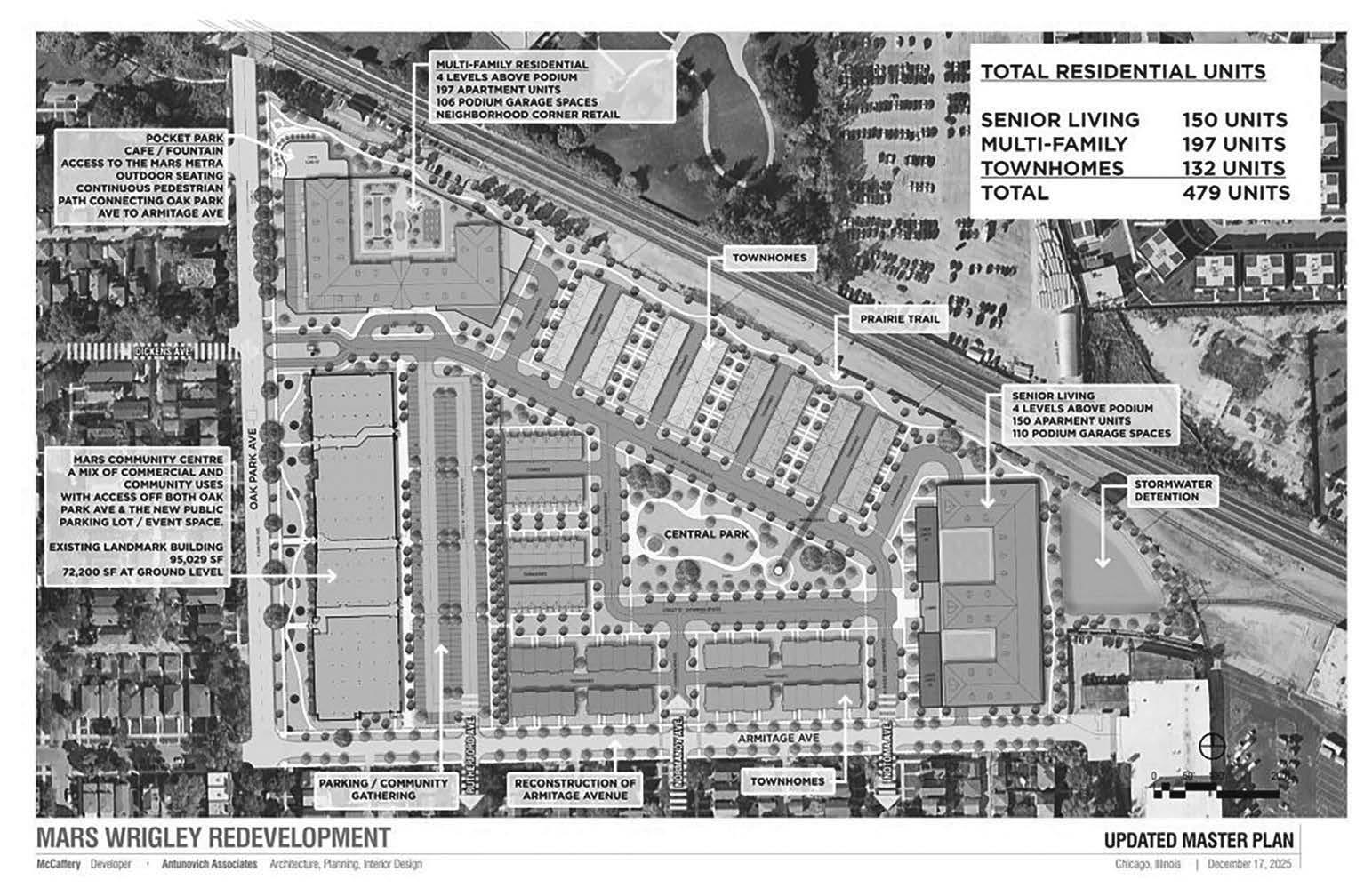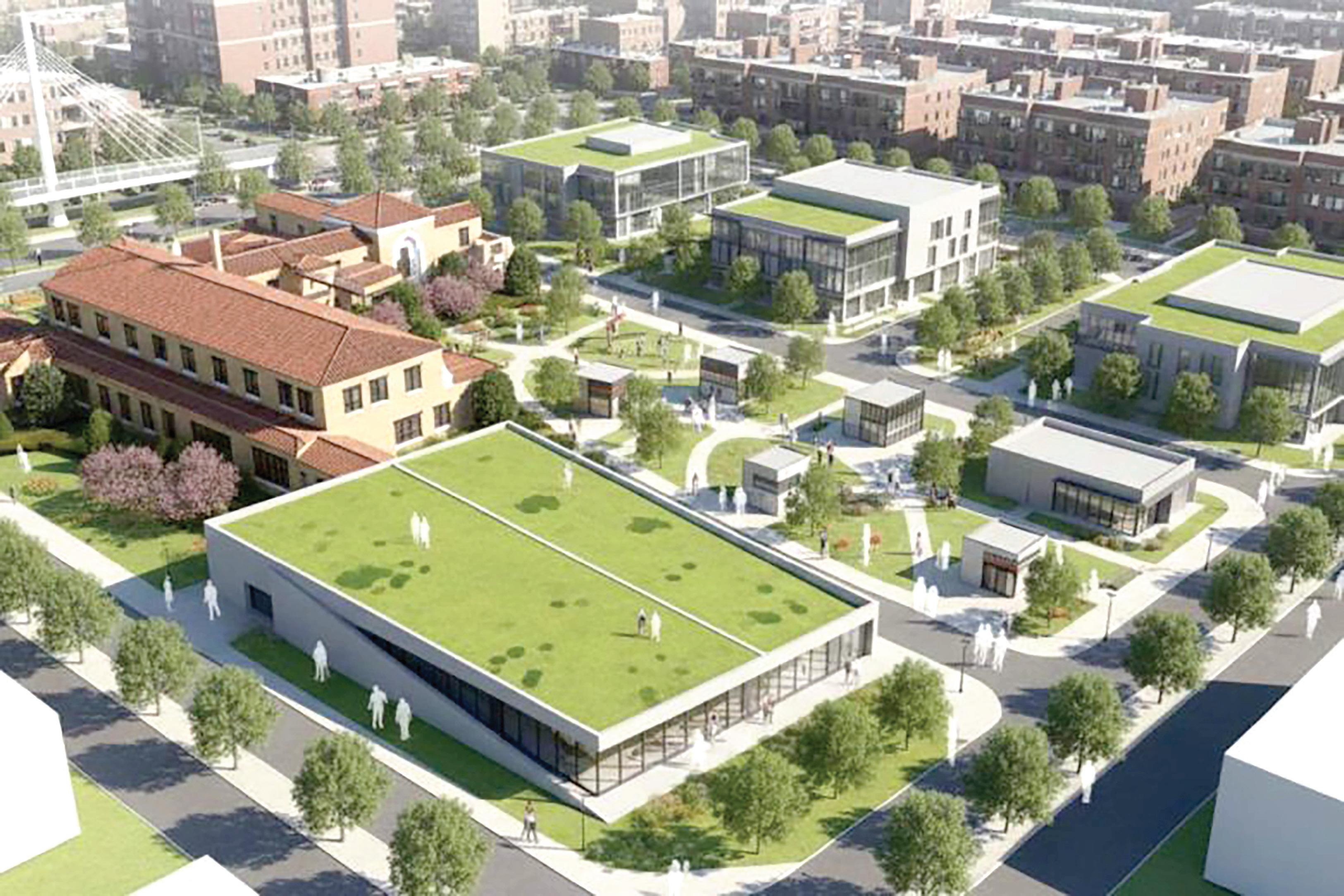 The development would include the repur posing of Mars’ landmarked factory building as a community center There would be multiple parks, space for a cafe and other commercial space, walking paths, improved pedestrian infrastructure and an events space, according to plans provided to Block Club