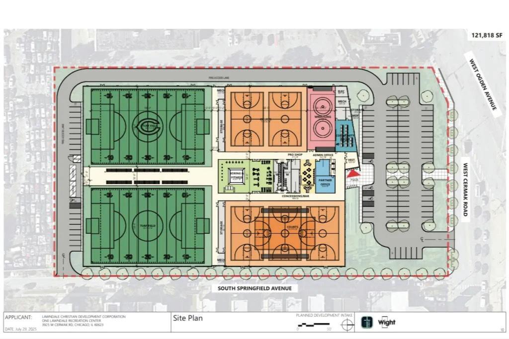 The first indoor sports and community center on Chicago’s West Side is one step closer to breaking ground, ideally this fall. Lawndale Christian Development Corporation — which aims to revitalize North Lawndale with af fordable housing, economic development, and community empower ment — was awarded $10 million to fund the $38 million One Lawndale Recreational Center at the intersection of Cer mak and Springfield. T he center will have indoor turf fields, basketball cour ts, and rooms for boxing, fitness equipment, wrestling and other multi-pur pose spaces