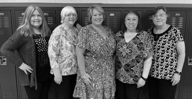 Gar eld Elementary said goodbye to four pillars of the educational communit y at the end of the 2022-23 school year. Le to right: Barb Popelka, Terry Wawzenek, Principal Jamie Stauder (not retir ing), Lotus Moy, and Nanc y Gehrke.