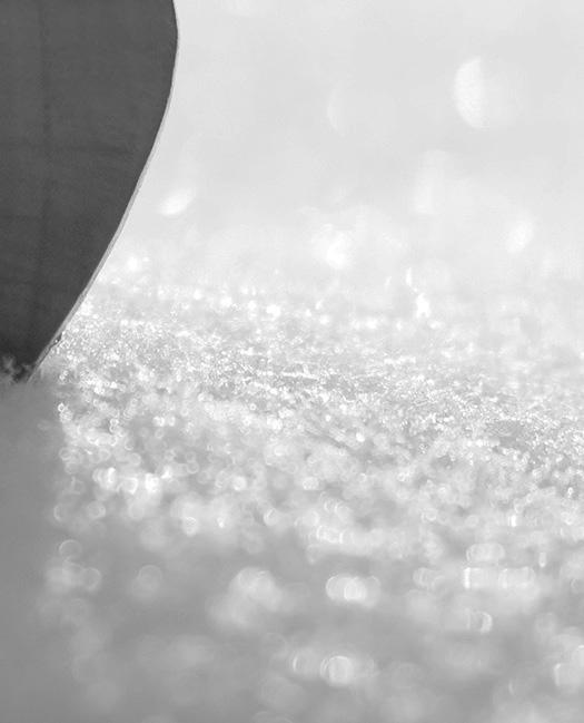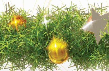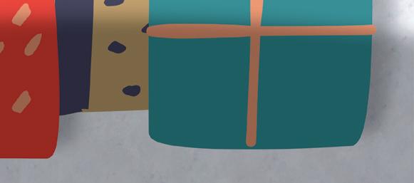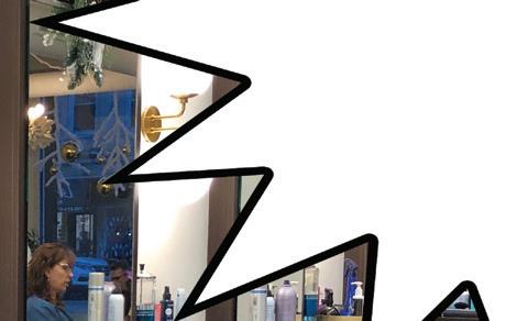 The secular winter wonderland consists of cotton draped over the windowsills to look like freshly fallen snow. Fairy lights twinkle on the support structures, while artificial flur ries sit atop wrapped boxes and garlands. Keeping things chilly, Epyk Luxury employees dressed the mannequins in jackets and coats.