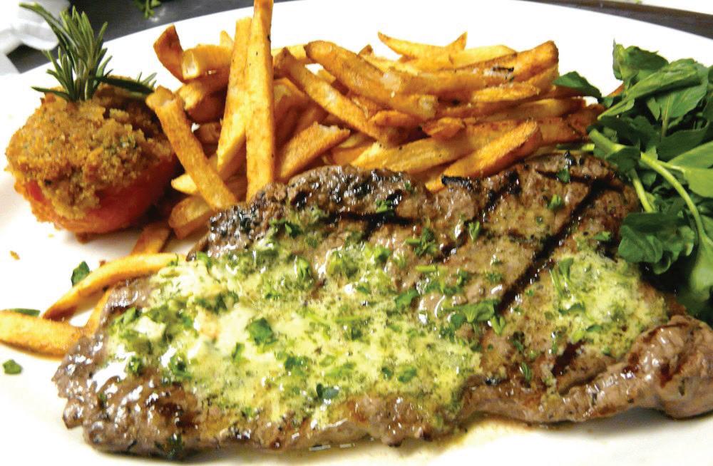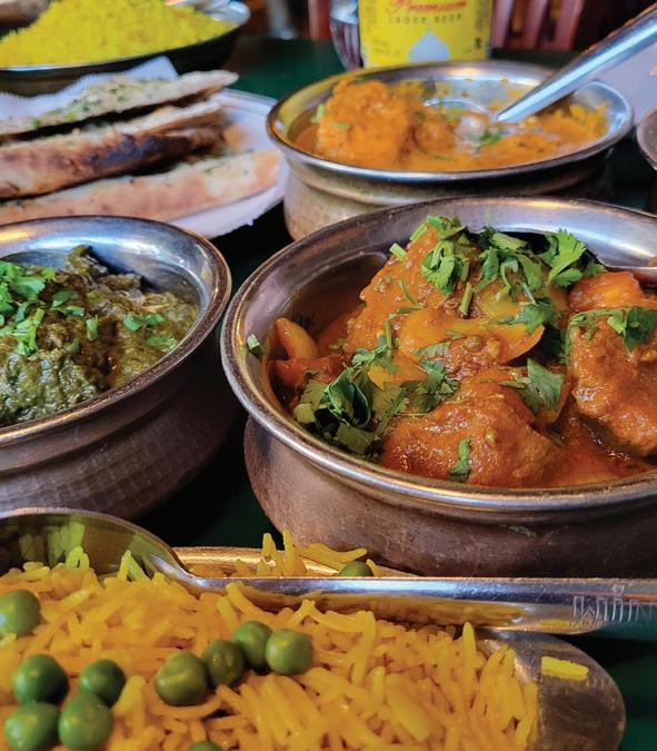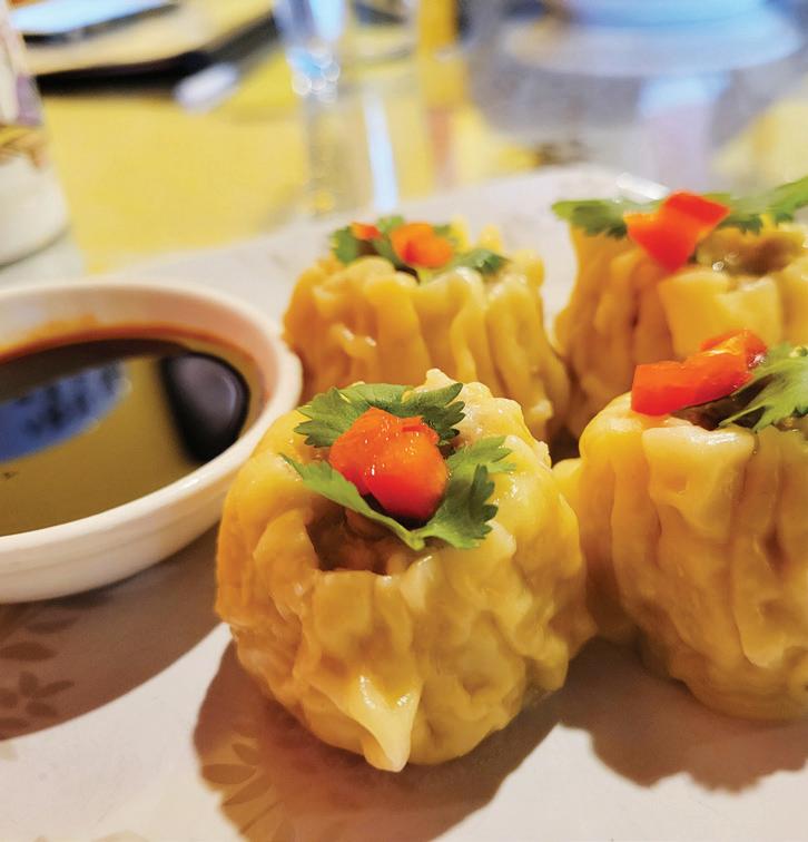 Upon entering Yum Thai’s new location, 7330 Madison St., Forest Park, guests are greeted by a flock of celestial blessing swans swirling around the well-appointed dining room. Wood carvings of this style famously ador n temple roofs in Norther n Thailand The swans symbolize good fortune and signify the lift ing of prayers to heaven. The collection of replica carvings inside Yum Thai are representative of Valaiporn PinyoNowlan’s jour ney from young student craving the foods of her homeland to confident Forest Park restaurant owner and chef.