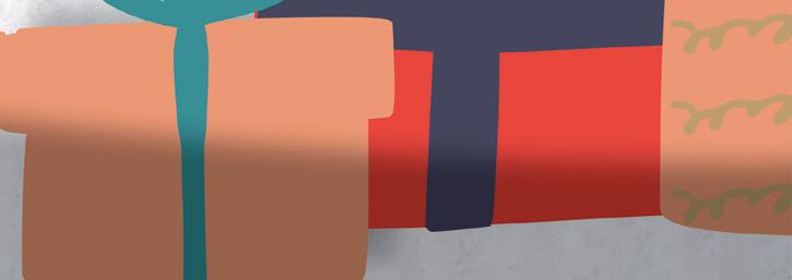 Senior Kathryn Greenlea and her part ner ke pt things cozy at Ten Thousand Villages, a fair-trade shop at 121 N. Marion St. In their cor ner window, the pair created a fireplace and rug scene that complemented the Christmas tree displayed in the main window, which was put together by the store’s staf f.