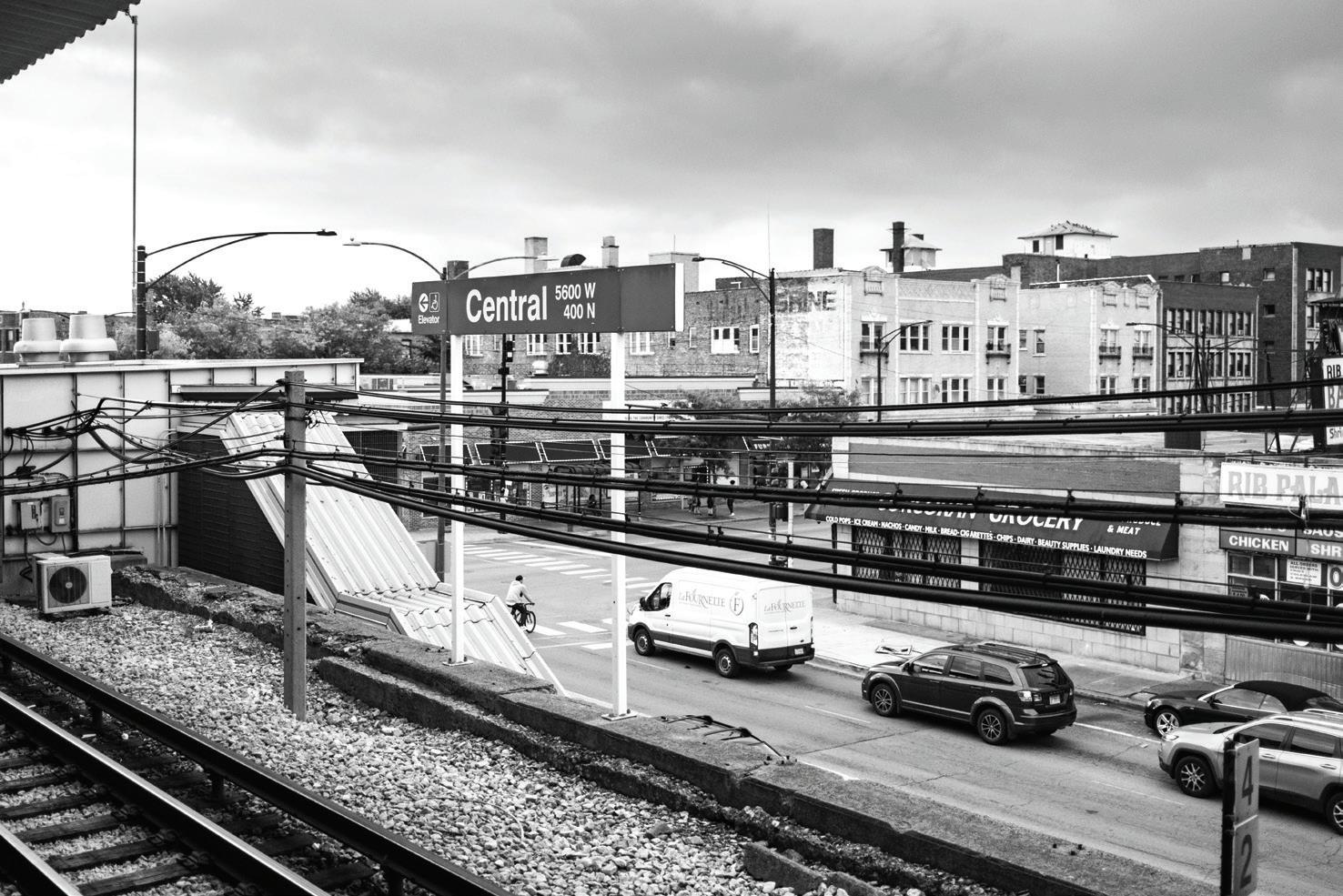 DOORS OPENING AT CENTRAL, CHIC AG O ’S WESTSIDE, 2023: is photograph was made at the Central Green Line stop, a point of entry into Chicago’s Westside.