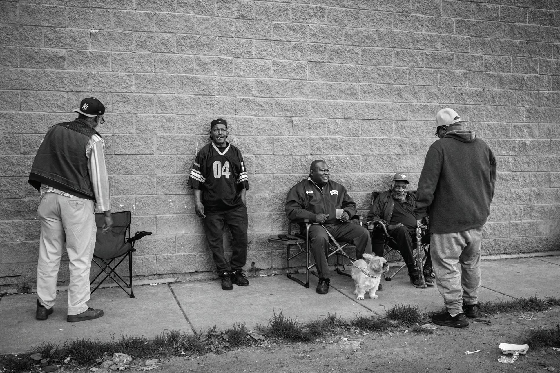 NO LOITERING, CHIC AG O ’S WESTSIDE, 2024: On a summer a ernoon, a group of older Black men hang outside, sharing stories and laughter.