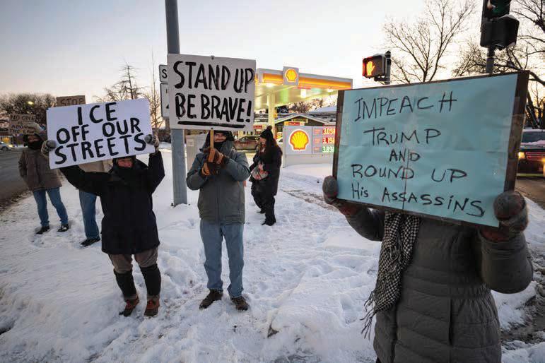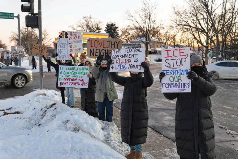 Protestors gather at the corner of Harlem Avenue and Longcommon Road in Riverside to speak out against U.S. Immigrations and Customs Enforcement and the Trump administration. e protest took place on Jan. 26.
