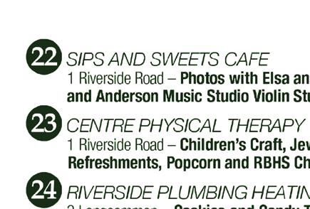 Popping back on the east side of Centenni al Park, enjoy Christmas cookies and candy treats at Riverside Plumbing Heating and Cooling, 3 Longcommon Road, and holiday treats and a kids movie at Salon Elia, 5 Long common Road