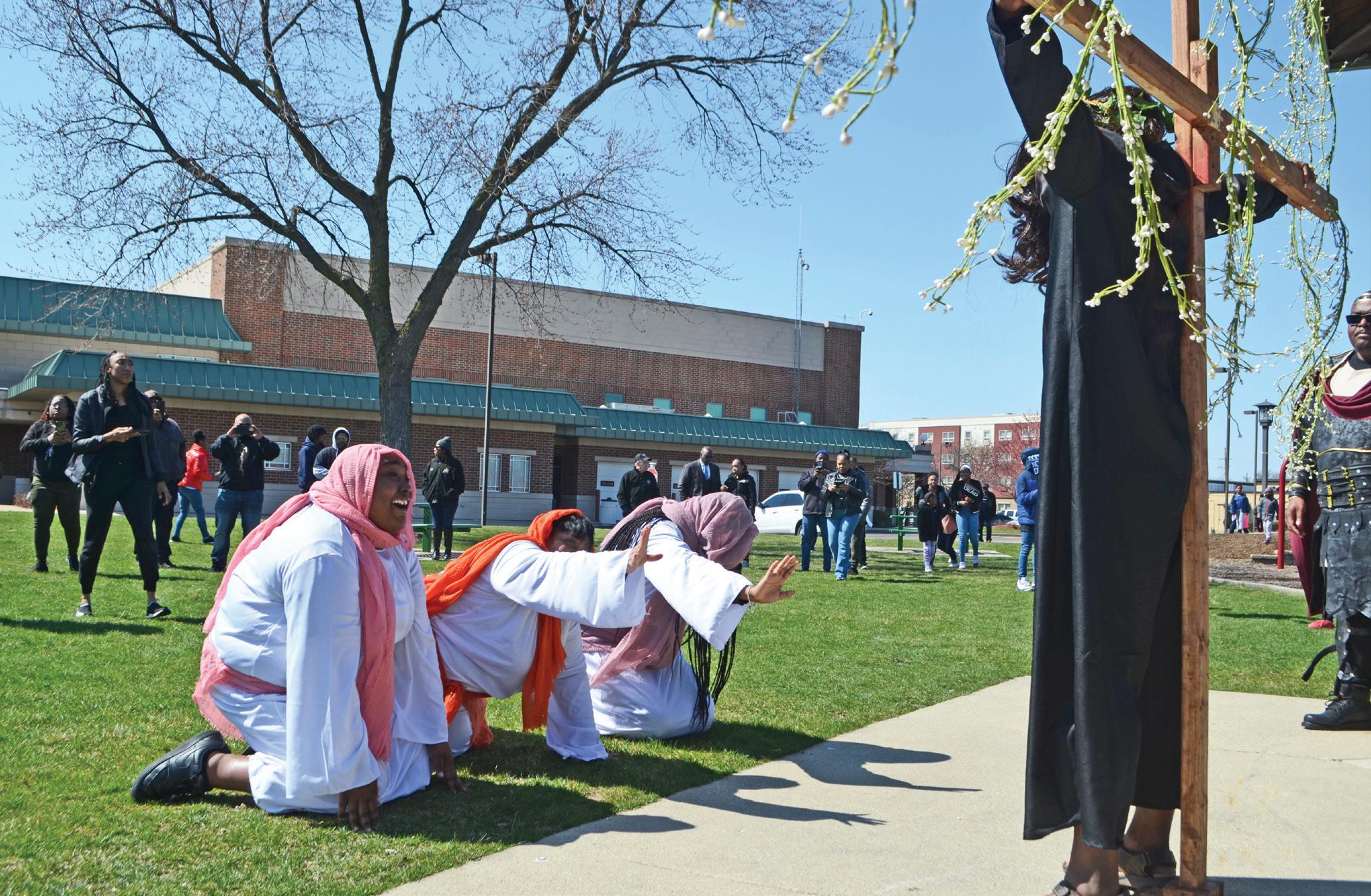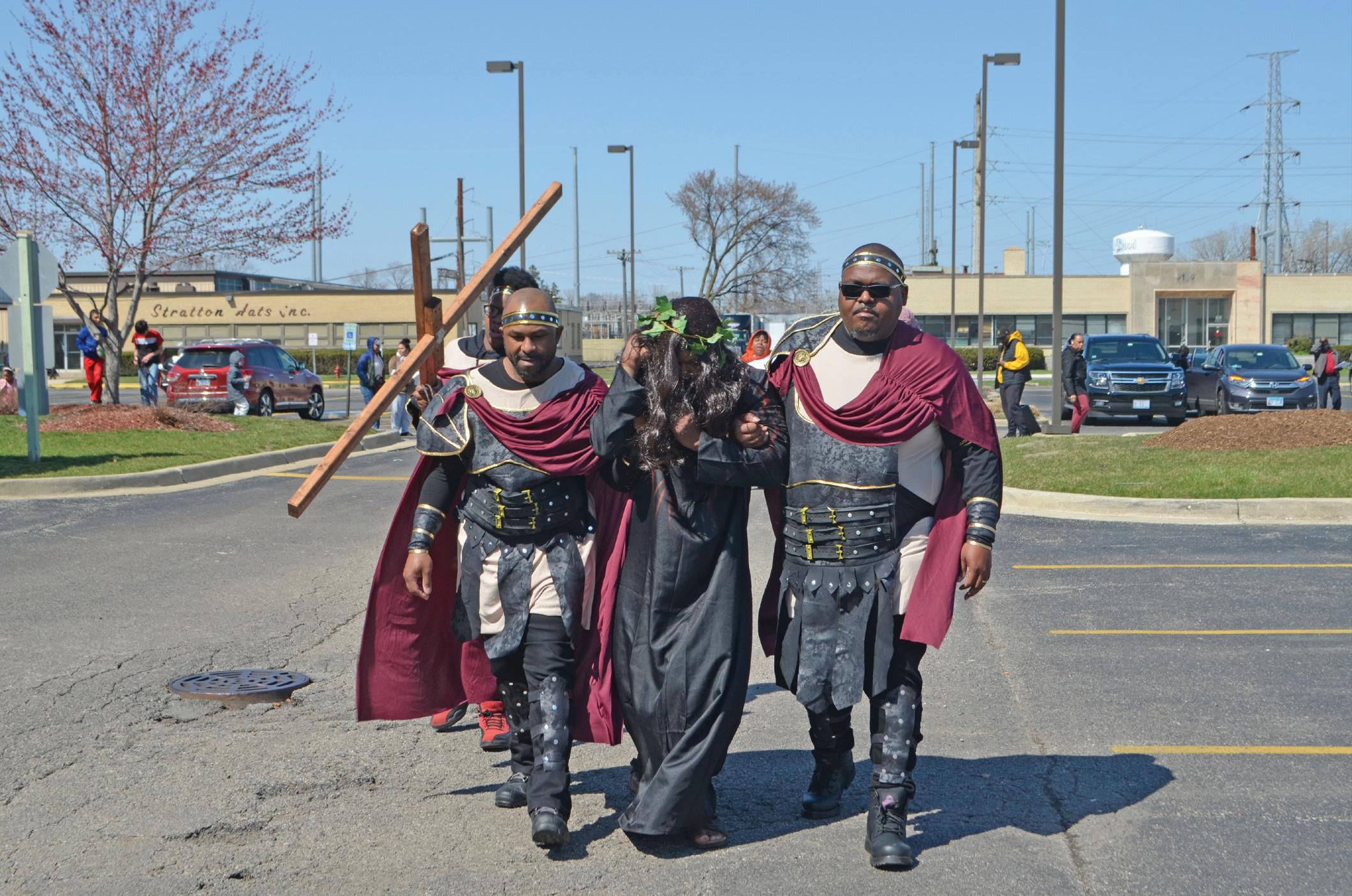 e Cruci xion of Jesus is reenacted at Stevenson Park, Bellwood, on Friday, April 7.