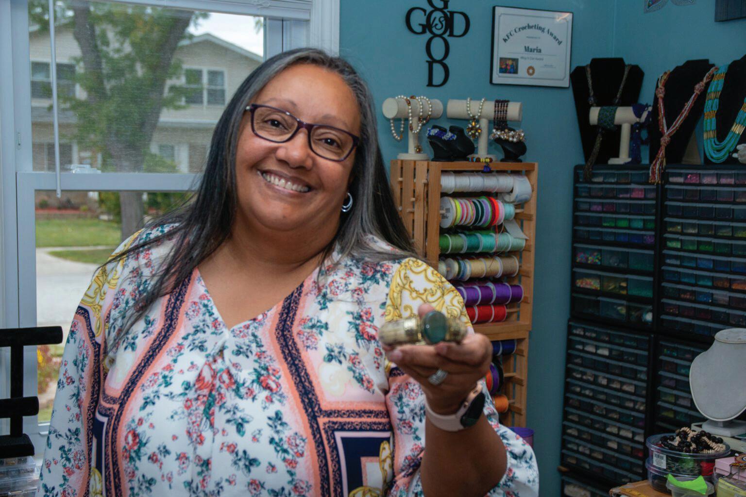 family has always been behind me telling me I’m very creative and that I need to do something with this creativity. So I started ordering beads and learning about the techniques to make them. I checked out books from the library on how to work with all the findings and how to finish a line — like that. I took a couple of classes here and there.