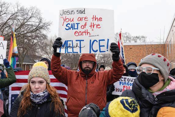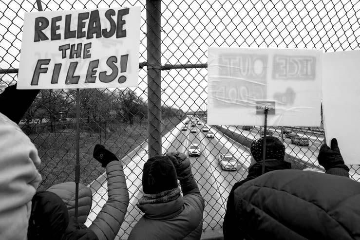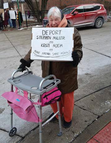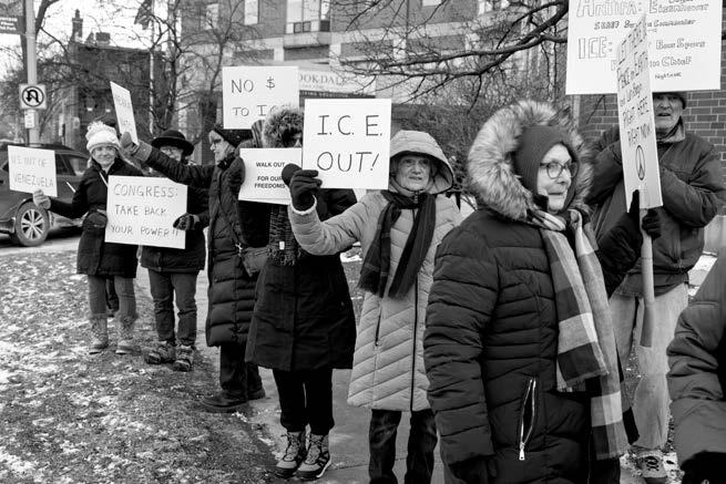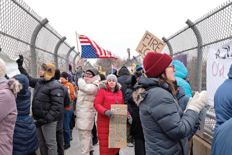 A few hundred protestors braved single-digit temperatures in Oak Park to take part in a demonstration following news that a Border Patrol agent had shot and killed a man in Minneapolis on Saturday.