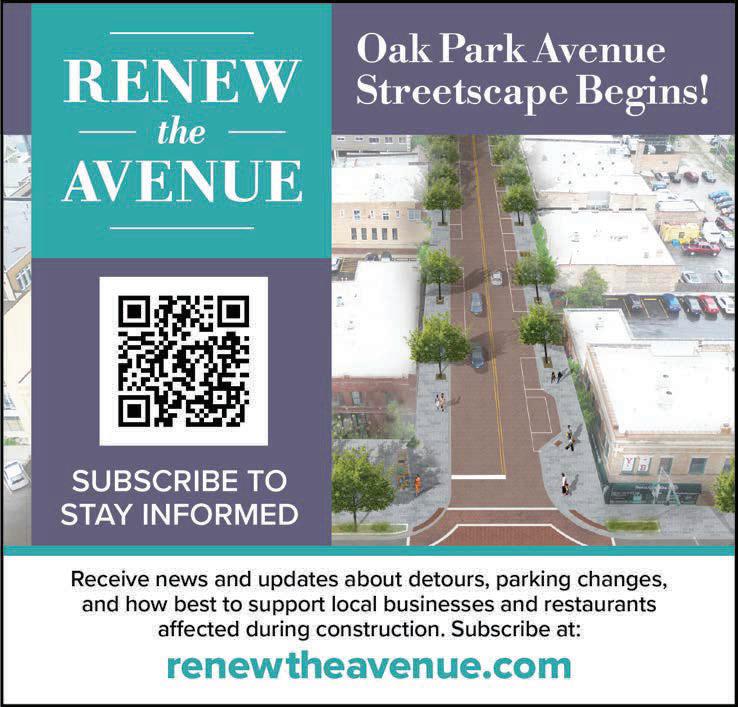 T he Oak Park Avenue project is set to redesign the streetscape by adding ar t installations, curb bump outs and other above ground improvements while overhauling the century-plus-old water and sewer systems that r un underneath Oak Park Avenue between Ontario Street and Randolph Street through the village’s Hemingway Business District.