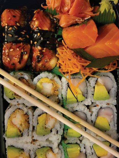 salmon, tuna, avocado, and yellow tail. The offering is a delicious spelling lesson. The festive X’mas Specialty Roll lets a well-known color palate drive the dish. Look for ruby-hued tuna, snow crab and tobiko to join green-hued cucumber and avocado in this ode to a festive time of year. The memorable roll is meant to be enjoyed all year long.