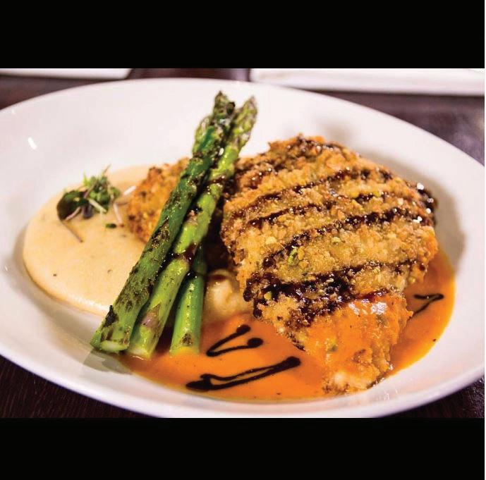 Let’s welcome fall with a Cucina classic. Chicken Pistachio is pan-fried with pistachio breadcrumb crust, red pepper cream balsamic sauce, creamy polenta, grilled asparagus.