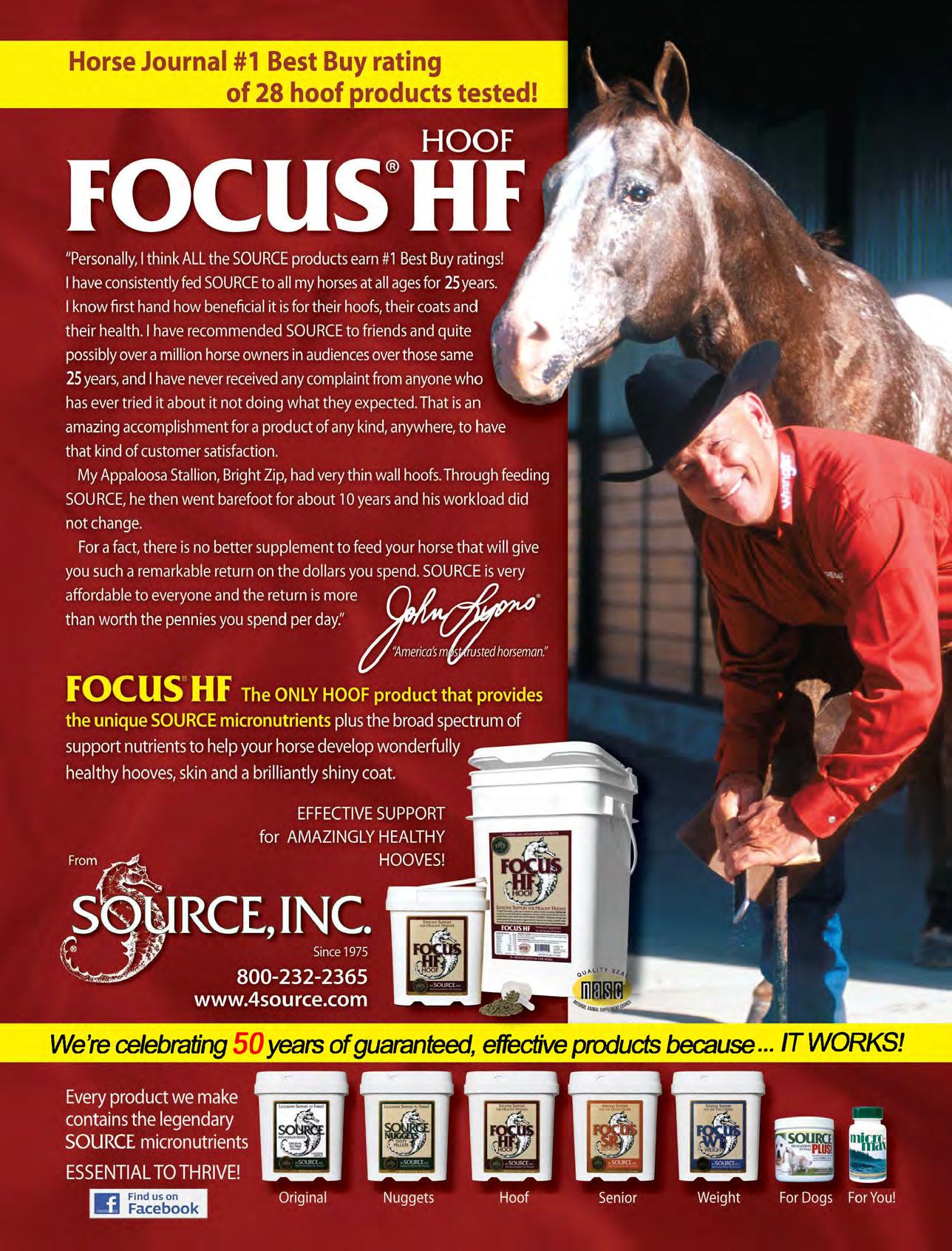 The most effec�ve nutrient building blocks to help support superior hoof condi�on. Contains a daily serving of the unique SOURCE micronutrients to maximize the u�liza�on and benefit of the addi�onal ingredients in FOCUS HF. 800-232-2365