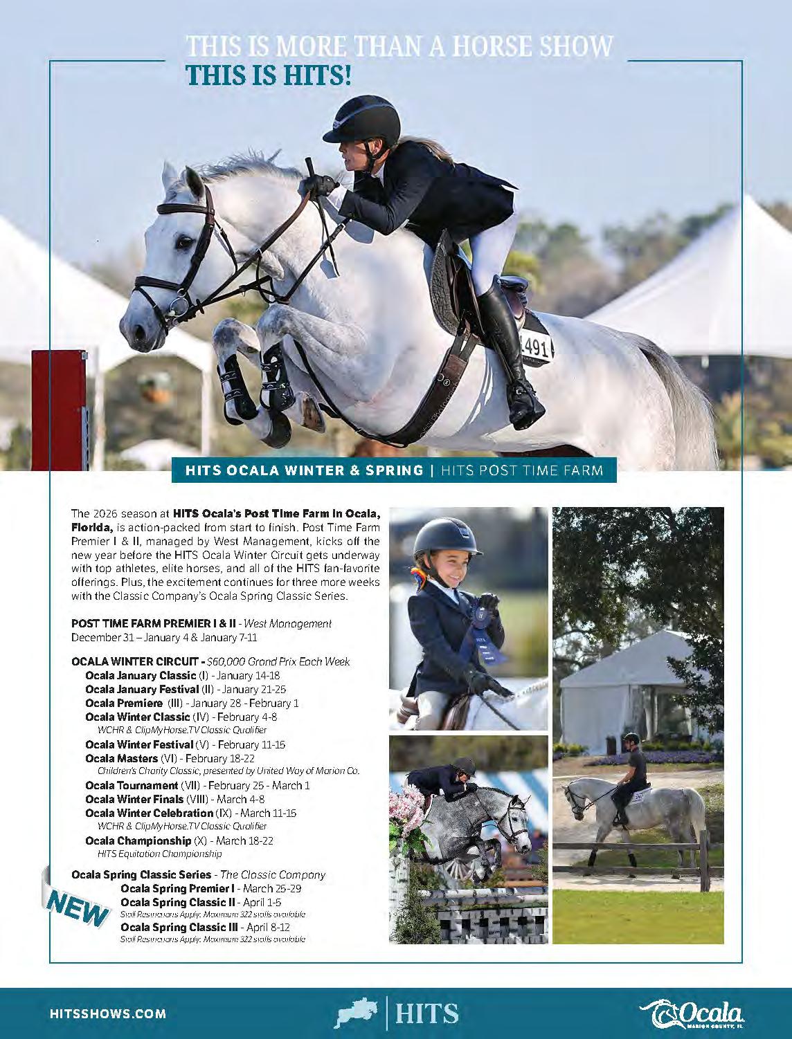 Jan 1-4 HITS POST TIME PREMIER I 13710 N US Highway 27, Ocala, FL 34482 352-620-2275 www.hitsshows.com
