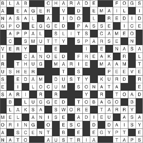 58. Shy away from 59. Regal title (1,1,1)
