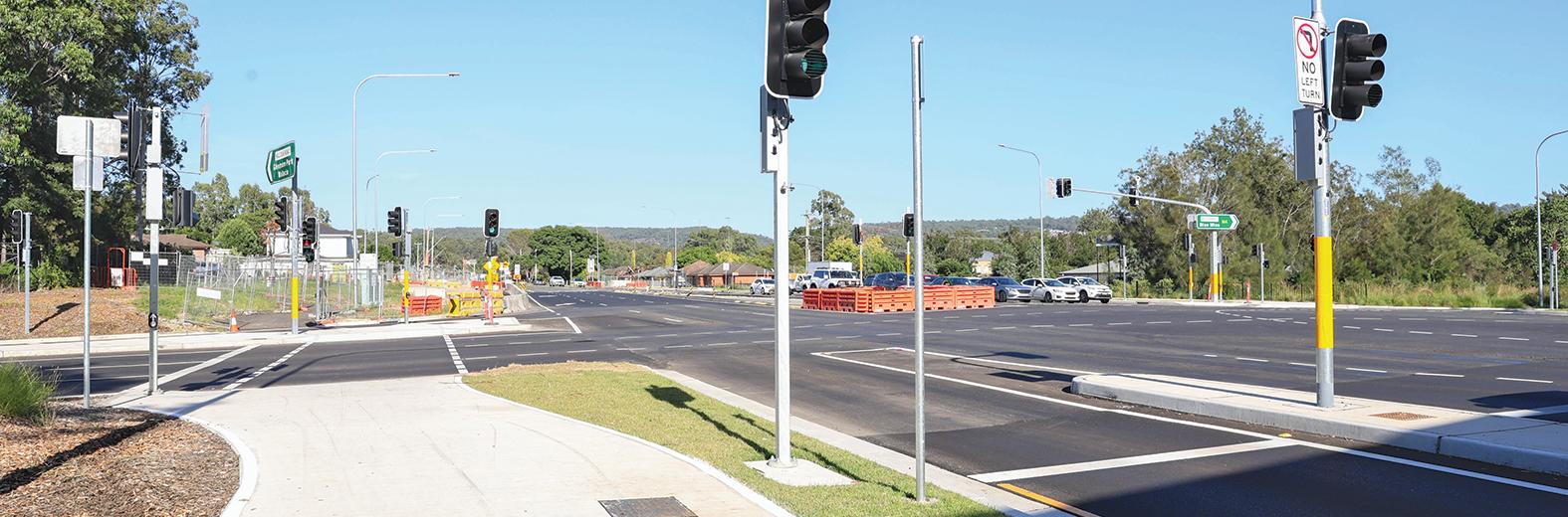 Acrane soars above the intersection of Armoury Road and Infantry Street in Jordan Springs as trucks and equipment busily go about their work below.