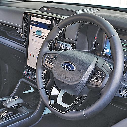 The Stormtrak retains a traditional ute suspension tune, especially at the rear, making it a good load lugger, either in the tub or with the 3.5-tonne towing capacity, we used it for towing the race trailer, it performed perfectly at 100km/h, with enough in reserve to pass semi-trailers while climbing hills. Personally, I think utes are cargo carriers, not sports cars, so for me, the Ranger delivered on expectation, yes, this meant body roll in corners, thanks to the high centre of gravity, decent, but not spectacular, brake performance and electric power steering that is accurate, but not as responsive as a Mustang.