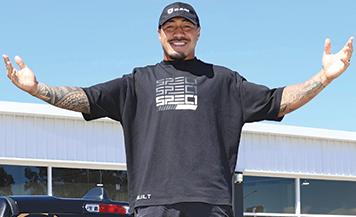 Panthers player Moses Leota jumped behind the wheel to have a closer look at the popular car.