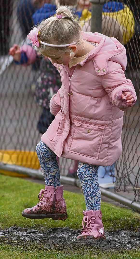 MUDDY FUN: Violet Smith enjoys a mud puddle at Davis Park in Nhill. The Wimmera has had a few decent drops of rain in the past week. Violet is the daughter of MinyipMurtoa football star Tanner Smith.