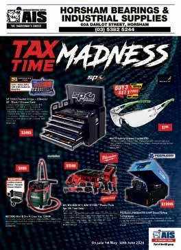 Page 55 Wednesday, June 5, 2024 www.theweeklyadvertiser.com.au SPORT Brought to you by 18-20 Pynsent Street, Horsham • Ph: 03 5382 3823 Need an electrican? See & INDUSTRIAL SUPPLIES 60A Darlot Street, Horsham Ph (03) 5382 5244 | AH 0418 504 111 www.horshambearings.com.au “think local, buy local” WE HAVE THE TOOLS TO MAKE YOUR JOB EASIER IT WILL STILL BE HARD BUT IT WILL BE LESS HARD = CATALOGUES ARE OUT NOW! TAX TOOL TIME TIME SCAN HERE TO VIEW CATALOGUE SCAN HERE TO VIEW CATALOGUE SCAN HERE TO VIEW CATALOGUE SCAN HERE TO VIEW CATALOGUE