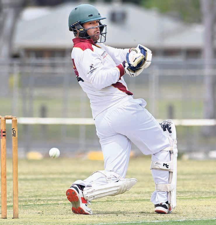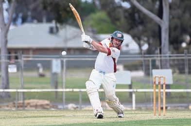 Brim-Kellalac-Sheep Hills top-order batter Isaac McPherson swings at a legside ball on his way to a half-century against Horsham Tigers at Horsham City Oval on Saturday. The Eagles posted an imposing 7-235 and kept the Tigers to 134 runs. McPherson took 3-19 off 4.5 overs to top off a good day. The Eagles sit atop the Horsham Cricket Association A Grade ladder after joining the competition this season. Story, page 53