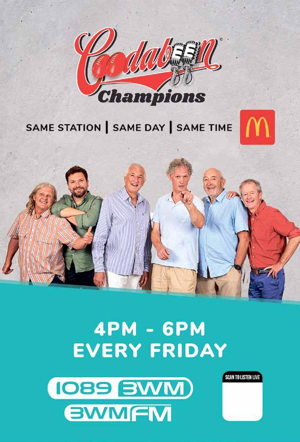 Page 59 Wednesday, March 8, 2023 www.theweeklyadvertiser.com.au sport Brought to you by 18-20 Pynsent Street, Horsham • Ph: 03 5382 3823 Need an electrican? See Load up for this year’s at FISHING COMP 27 Hamilton Highway, Horsham Email: jashooting@bigpond.com Buy from the guys who actually shoot & fish Licence No.: 833-520-20F Ph: 5382 2248 jashootingsupplies.com.au MONDAY, MARCH 14, 2022 (Labour Day) NATIMUK & DISTRICT FIELD & GAME 100 TARGET Cla ic OVER $20,000 + PRIZE POOL shoot the program clean for $9,000 $299 from Swags