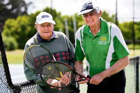 STALWARTS: Tom O’Connor, 85, and Les Warrick, 77, turned out for Horsham Lawn’s B Special team at the weekend. Warrick won two of his three sets, going down in a tiebreaker in the third. O’Connor also won two of three sets, losing the third by two games. Horsham Lawn B Special won the round by eight sets.