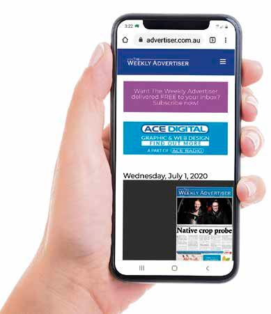 www.theweeklyadvertiser.com.au Want The Weekly Advertiser delivered FREE to your inbox? SUBSCRIBE NOW! Walk and Deliver anaward-winning newspaper WE STAWELL IT’S And we love delivering The Weekly Advertiser to your household every week We would love to be able to continue to deliver to your letterbox every week and are currently seeking walkers in Stawell. Suitable for any person wanting to be active, get outdoors and earn extra money. We would love to hear from you! Contact The Weekly Advertiser horshamoffice@aceradio.com.au | 5382 1351 or subscribe to receive our paper electronically at www.theweeklyadvertiser.com.au/subscribe-to-e-newsletter/ FRIDAY, OCTOBER 14, 2022