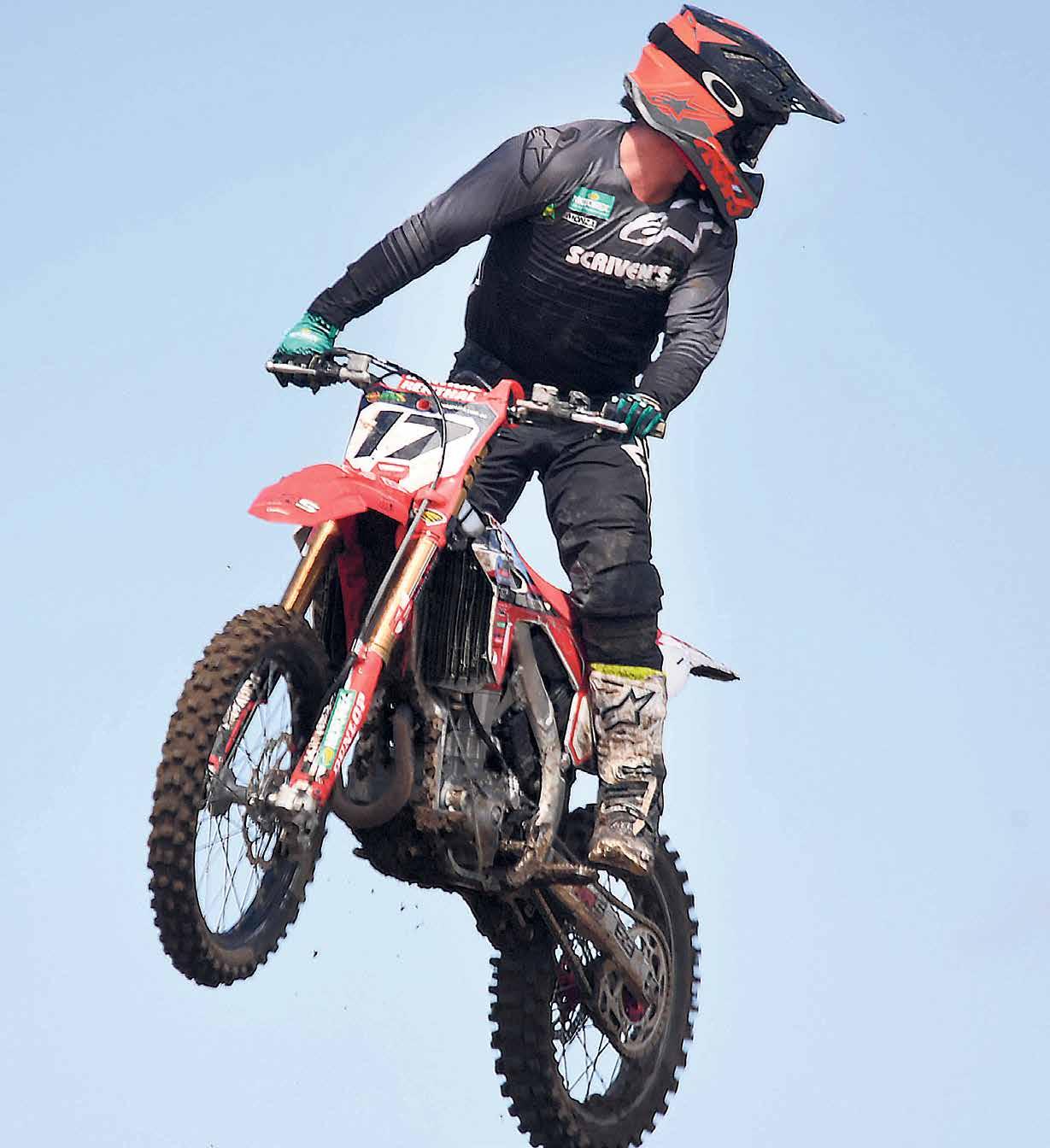 Warracknabeal motorbike rider Corey Watts looks back on the field as he flies through the air during Horsham Motorcycle Club’s MX Amateurs event. Watts made the podium in his team race and All Power A Grade during the two-day event before winning the Bronte Holland Cup for a second year in a row. More than 200 riders joined Watts for a weekend of racing. Story, page 55.