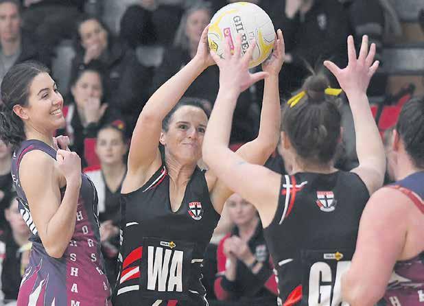 FINALS FEVER: Kalkee and Rupanyup launched Horsham District league A Grade netball finals on Saturday with a competitive elimination performance. Panthers playing-coach Georgia Hiscock defends Kalkee shooter Jarrah Martin in Rupanyup’s 57-28 win. Finals continue this week between Edenhope-Apsley and Laharum on Saturday and Rupanyup and Noradjuha-Quantong on Sunday. Story, page 68. Picture: PAUL CARRACHER