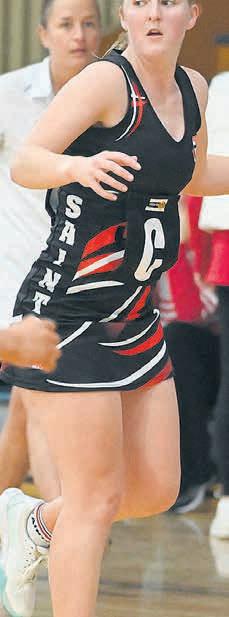 ON THE RUN: Horsham Saints’ Jackson Davidson avoids a tackle by Nhill’s Jordan Zeitz.