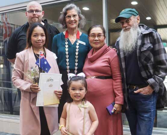 WELCOME: New Australian Citizen Bernaditte Abuda (front left) with Mayor Robyn Gulline (centre) and family.