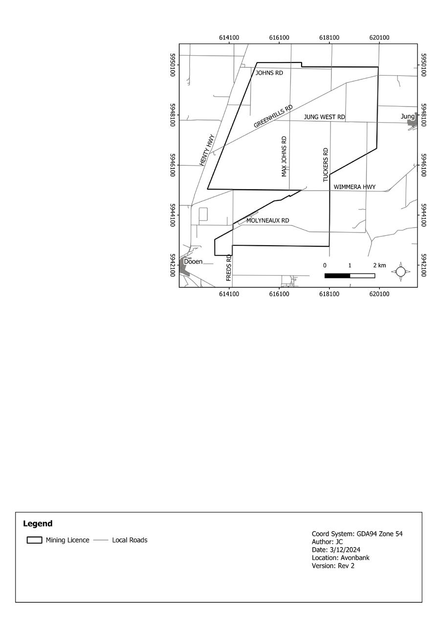 The mining licence is for a mine that spans 3426 hectares over 38 years, and is about 1.3 kilometres northeast of Dooen – with a footprint that is split by the Wimmera Highway.