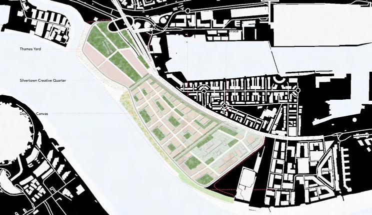 Channelling creative industries into the economic core of West Silvertown with supporting commercial spaces in mixed-use and mixedtypology neighbourhoods where home, work and play are immediately accessible.