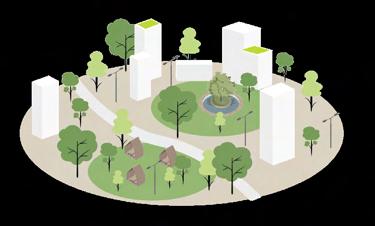 An inclusive, interconnected urban lifestyle is produced via mixed-use architecture and green infrastructure.
