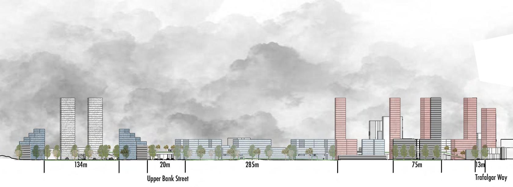 The design improves access and connection in response to the site's closeness to a protected area and the River Thames. In order to promote community, it separates the neighbourhood into discrete but connected areas, with green spaces dispersed equally to guarantee that every resident has equitable access to nature.