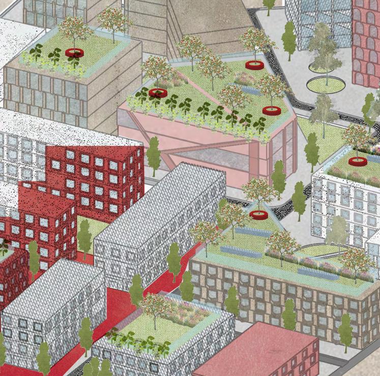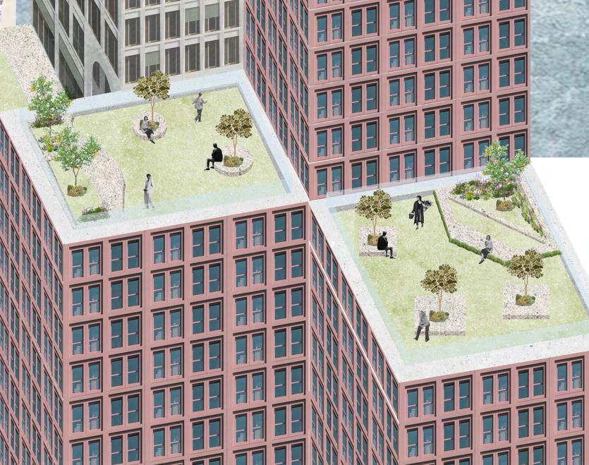 It provides spaces for recreation, festivals, and community life and is connected to the old fish market. Retail, courtyards, rooftop gardens, and active frontages all promote everyday contact, wellbeing, and climate resilience.