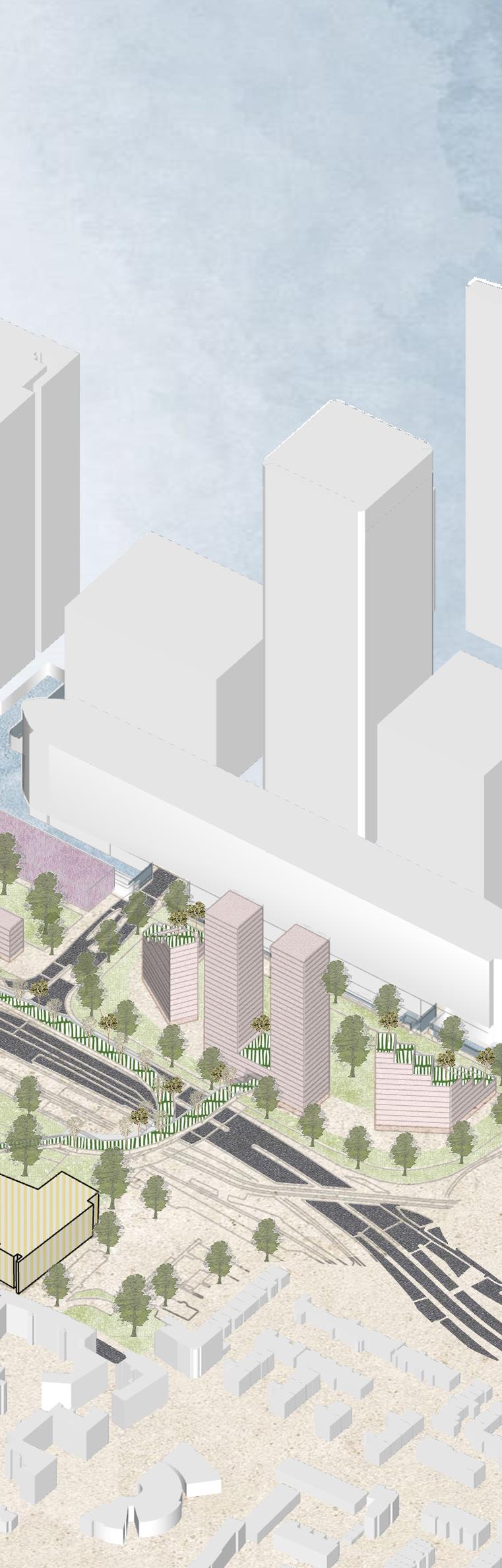 The Billingsgate & South Poplar concept, which is situated on the border between Poplar and Canary Wharf, turns a disjointed industrial landscape into a resilient, people-centered neighbourhood. By incorporating natural corridors, a dynamic cultural bridge, and a variety of housing types, the concept reimagines high-density living through sustainable urban solutions. The design promotes a healthier, more connected lifestyle by striking a balance between ecological networks and inclusive public areas, guaranteeing that social wellbeing and environmental performance are integrated at every scale.