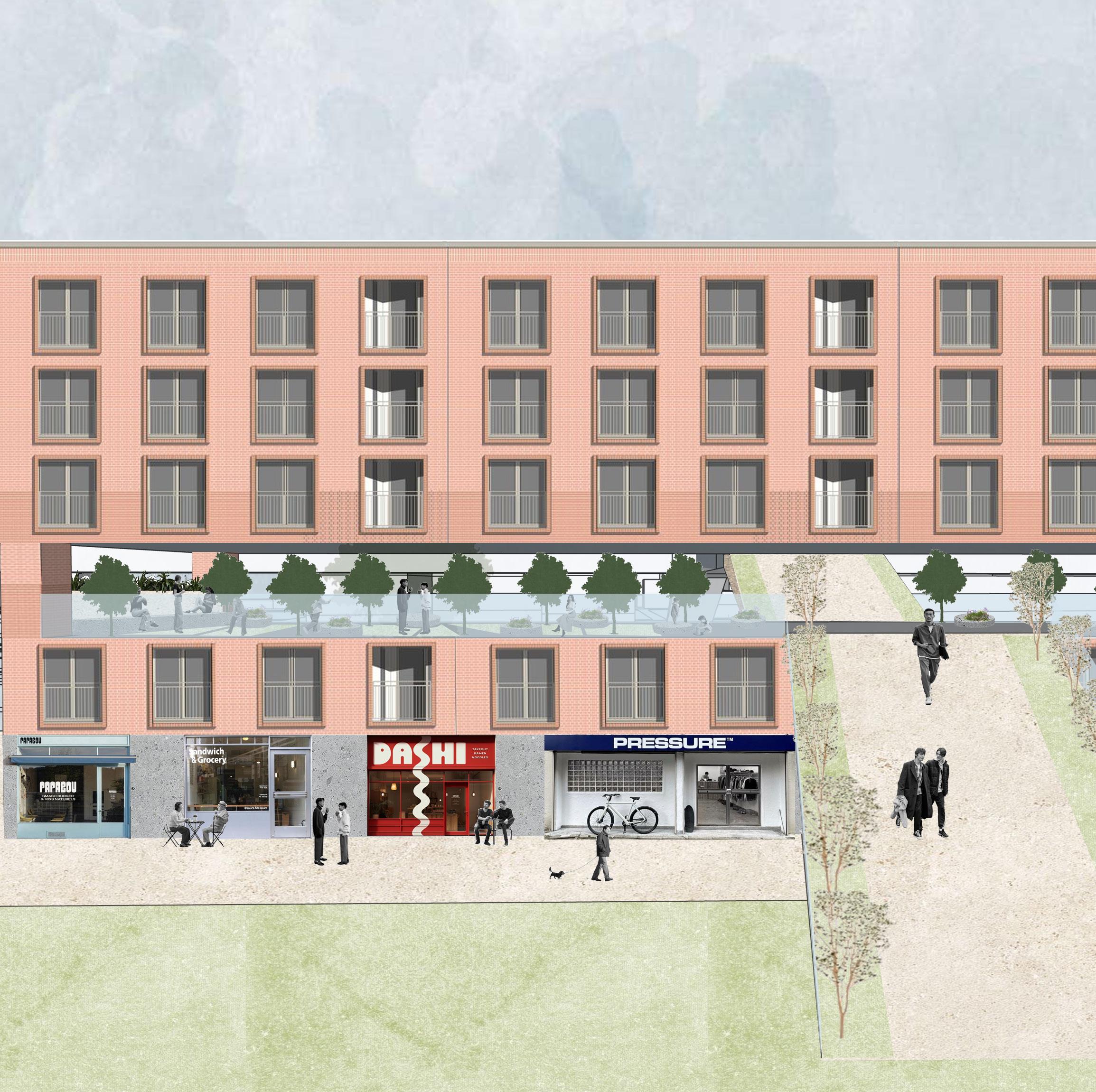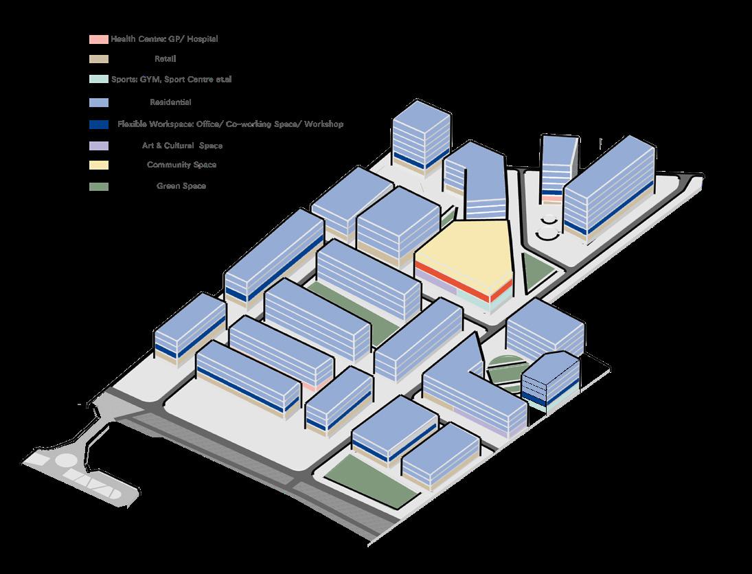 This proposal explores a mid-scale layout for Convoys Wharf, transforming the vacant riverfront area into a vibrant, human-scaled area. It features active public spaces, layered housing, and green infrastructure to support daily social life. Tiered housing, communal courtyards, and permeable streets promote walkability, affordability, and liveability. Balancing architectural diversity with spatial coherence, the design prioritises flexibility and community well-being.