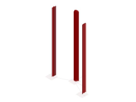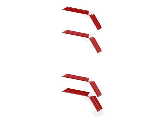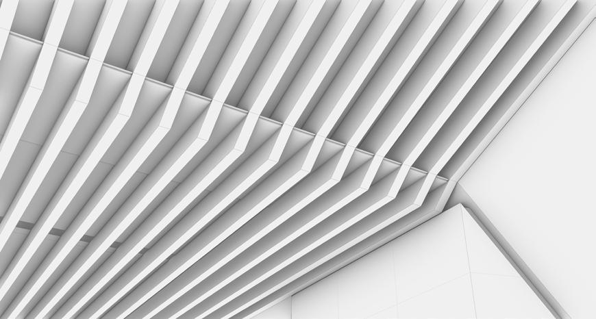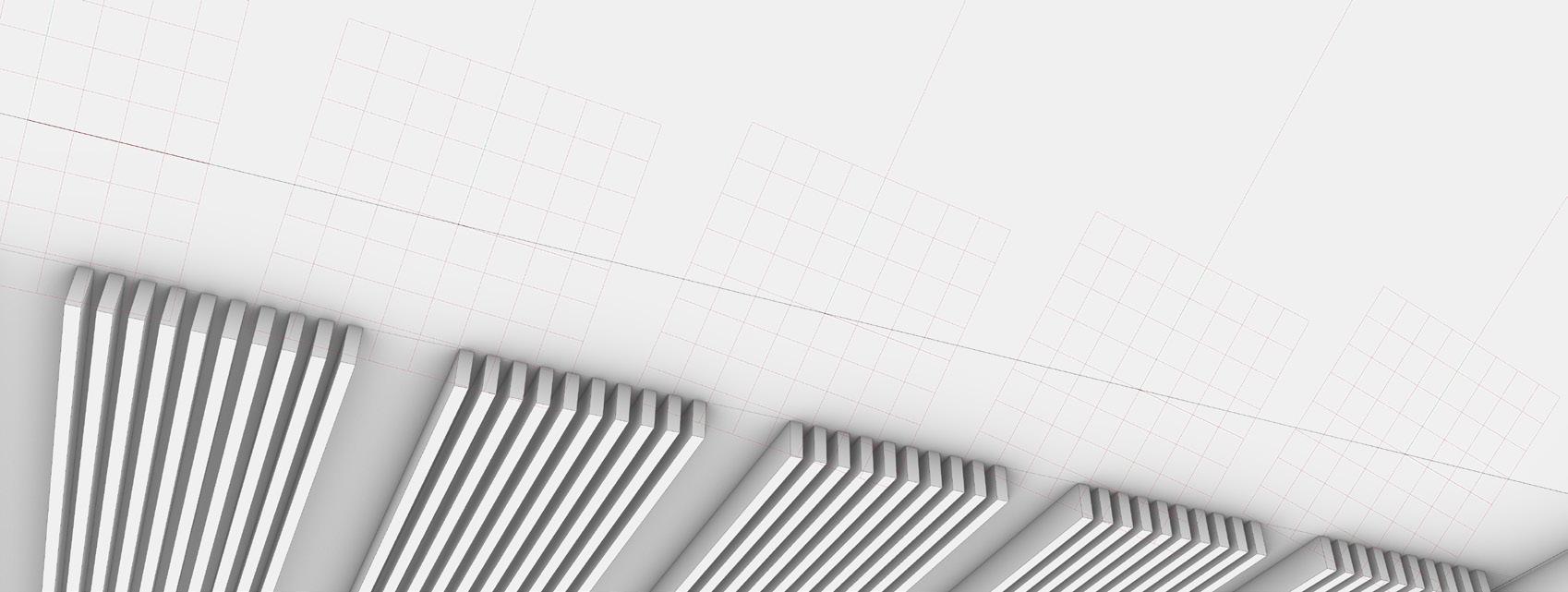 在這裡使用的實例中,是進行格柵放射狀且等距的編排,並且同時要貼合在斜面上, 另外在留縫中加入新的元素,與格柵不同尺寸的C型鋁擠型,因此編排的順序多做了一