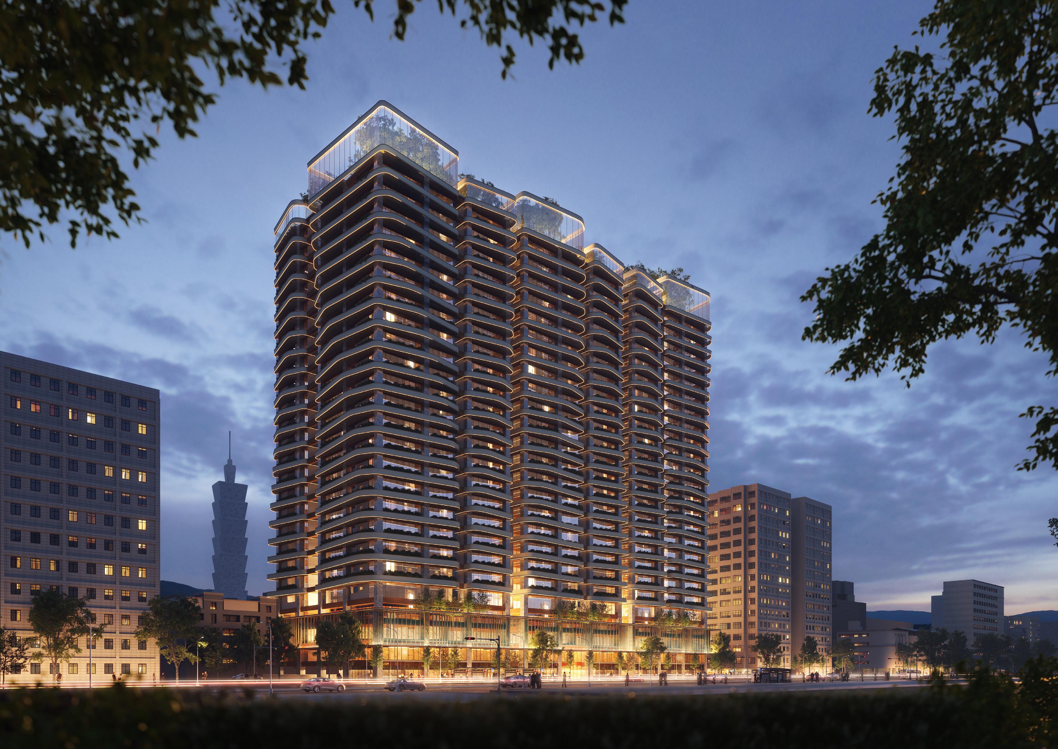 在這個建案中,經過多次調整,最終將曲線應用在外推的深度變化,讓人不會立刻感 受到立面漸變所帶來的強烈視覺,但換了一個角度,卻能感受到柔和曲線中帶來的強烈張 力,使立面帶來多一層次的觀賞性。