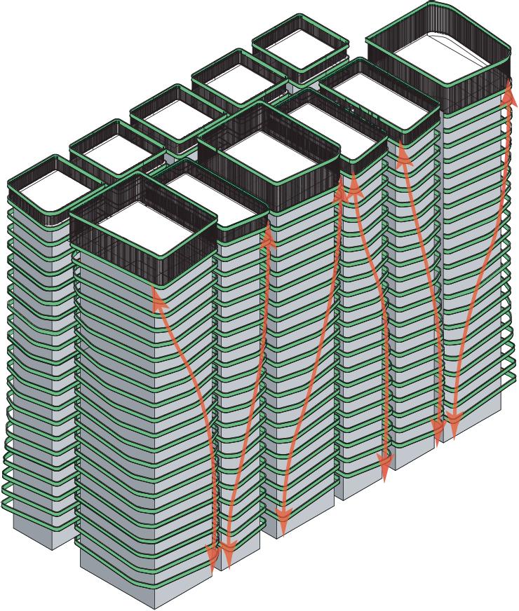 些缺點,設計上採取了分棟及比例調整的策略,從而增加了建築的變化性。同時,