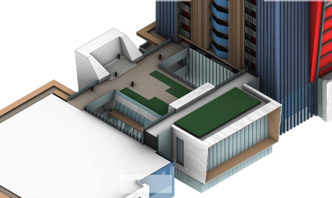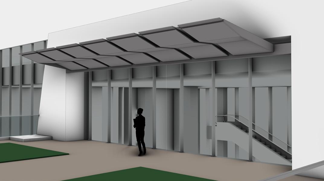 探討建築的比例感與元素呼應,切除掉建築後,我們嘗試以正門立面元素 加入,讓設計變得更有呼應及整體性,並從圍塑的空間中去檢討這樣的空間 是否適合使用。