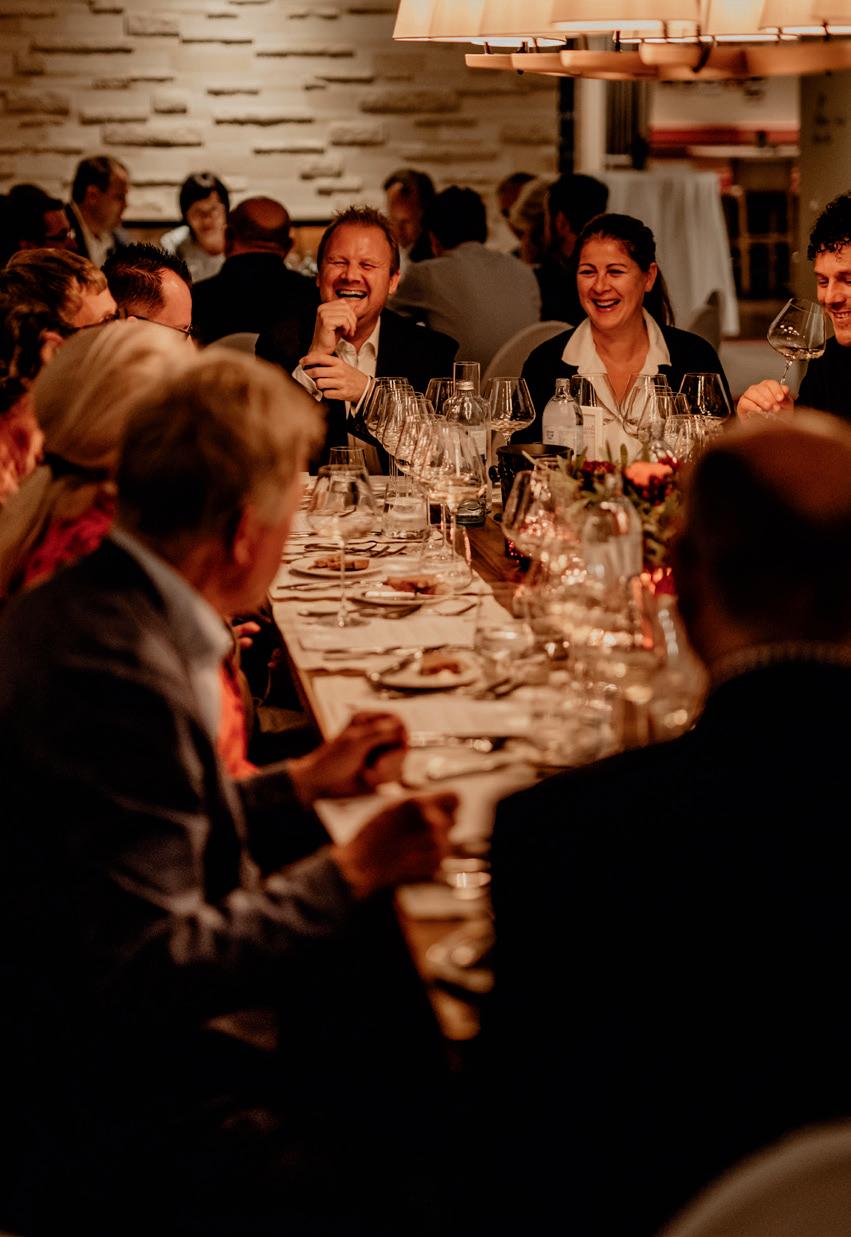 Aperitif, mehrgängiges Winzer-Galadiner von Andreas Döllerer mit begleitenden Weinen anwesender Winzer:innen & Produzent:innen in Döllerers Stammhaus in Golling.