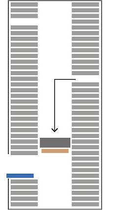 Seitenansicht des Lagerlifts: Elevatorposition zentral im System. Tablare in zwei Speichern vorne und hinten angeordnet.
