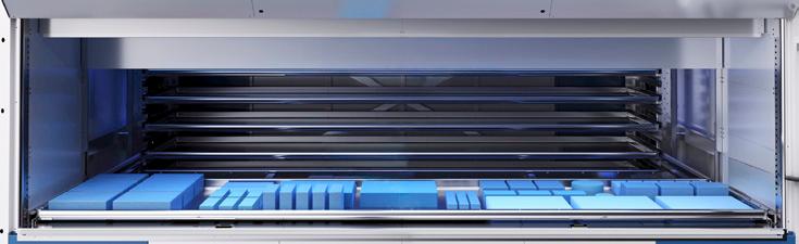 Das angeforderte Tablar wird unmittelbar zur Bedienöffnung geliefert, ideal für schnelle Entnahmen und effiziente Nachfüllprozesse.