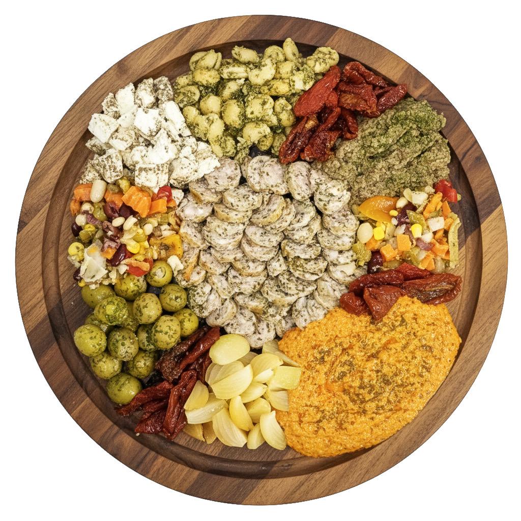 All platters are freshly prepared and made to order. Prices are based on the weight of the items at the time of preparation. A flat service fee of €4.99 will be added to each platter.