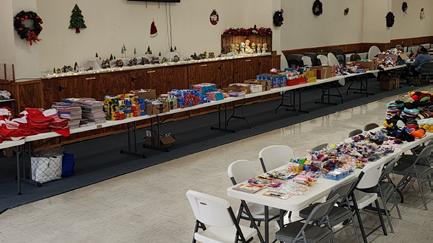Winter Ranch “Chaos Coordiantors” Bob and Sandy Coakley and their fellow Winter Ranch residents collected coloring books, crayons, toothbrush, toothpaste, Barbies, snacks, Ramen noodles, toys, hats, and Stuffies to create 280 jampacked stockings for young children and 20 stockings for infants. These were transported to ARISE Adelante in Alamo. The Coakleys and their fellow chaos members also collected “over a ton” of dry goods, including rice, beans, flour, and masa for the ARISE pantry. At the end of the season, when Winter Ranch residents prepare to leave for the summer, they collect food items