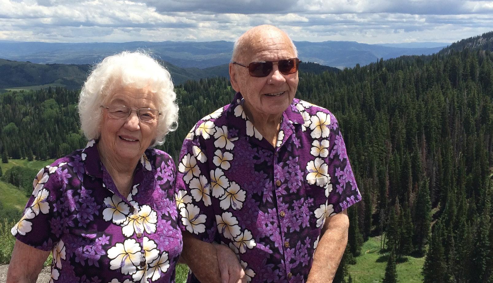 Gordon and Marjorie Larsen, Sarah Denzer’s inspiration for travel, wearing matching shirts during a visit to Yellowstone. Welcome Home tour director Sarah Denzer (right) poses with an alpaca while accompanying a tour of Alpaquita Ranch.